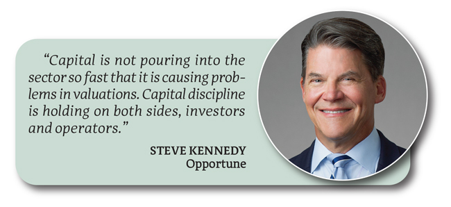 “There may be more capital available than can be usefully deployed all at once, but capital is not pouring into the sector so fast that it is causing problems in valuations,” Kennedy states. “Capital discipline is holding on both sides for both investors and operators.”